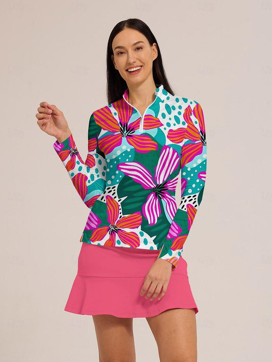 Hyped-up Tropical Golf Shirt Quarterzip UPF50+