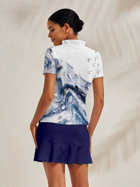 Inked Skins Ruffle V-Neck Polo Top UPF50+