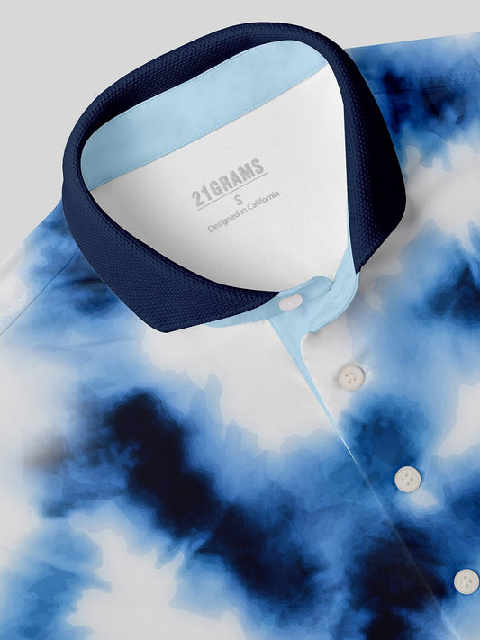 Aqua Wool Men's Snap Buttons Long Sleeve Polo Shirt