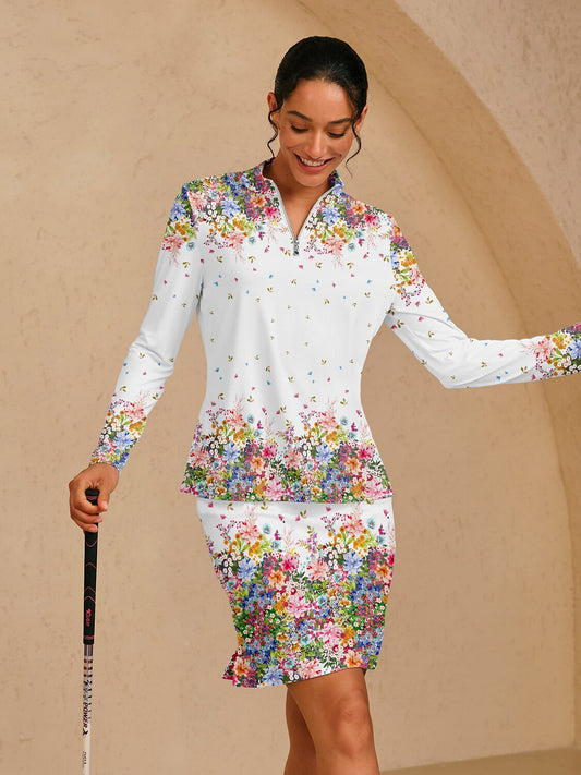 Botanical Energy Silky Ruffle Golf Shirt Quarterzip UPF50+