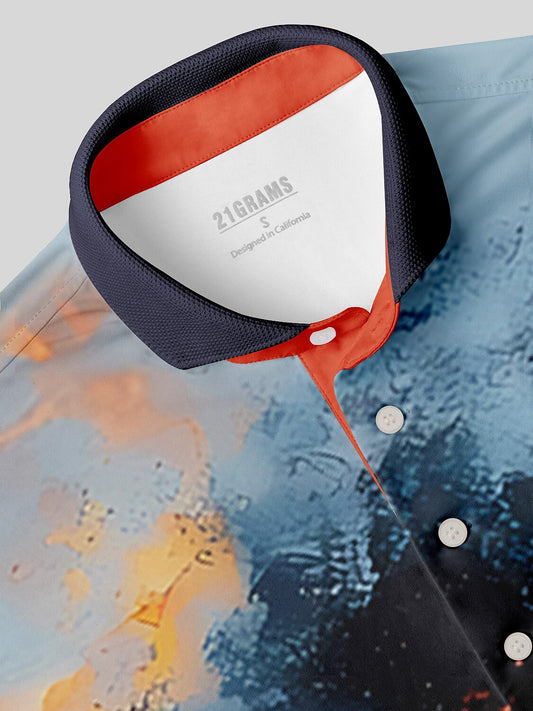 Playful Nautical Men's Ribbed Collar Polo Top UPF50+
