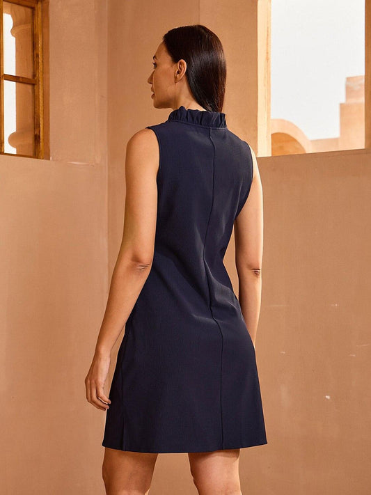 More Than Basic Sleeveless V Neck Ruffle 36.5 Inch Dress UPF50+