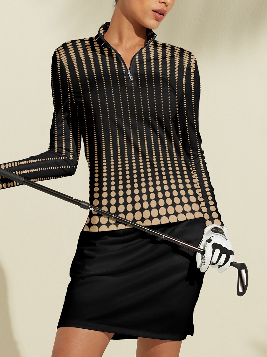 Hübsches, feminines, seidiges Golfshirt mit Viertelreißverschluss UPF50+