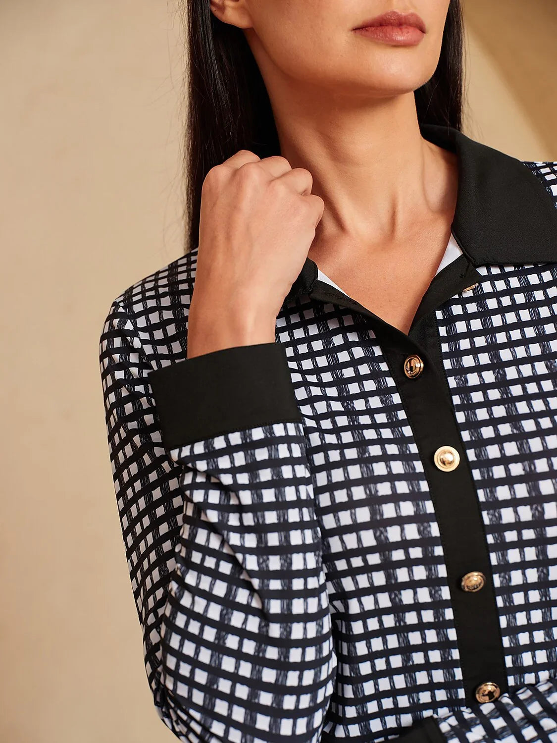 Desde nuestra colección Essentials. Diseñada con tapeta de color contrastante y botón dorado, es sofisticada y a la moda. El cuerpo en forma de línea A modifica la silueta. Es perfecta para eventos sociales o deportivos.