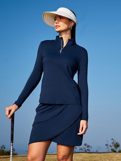 Camiseta de golf de manga larga Navycore con cremallera cuartel UPF50+