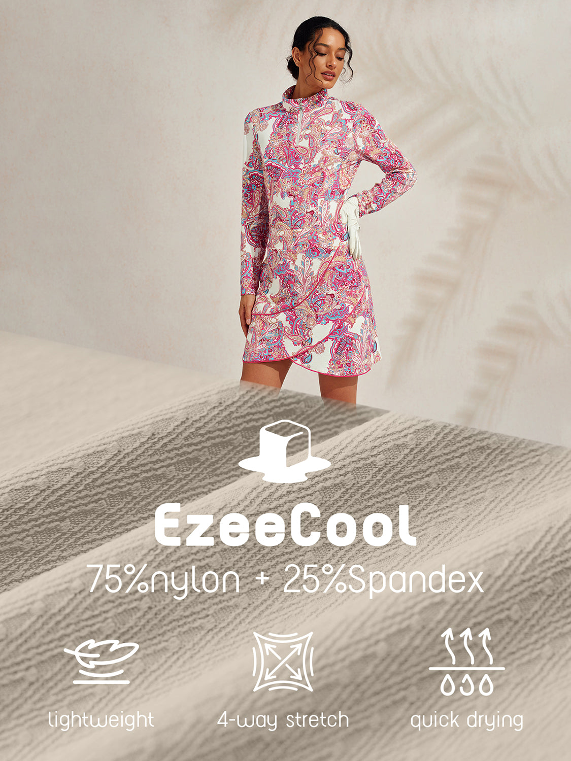 - Tela EzeeCool™: Ligero y fácil de cuidar