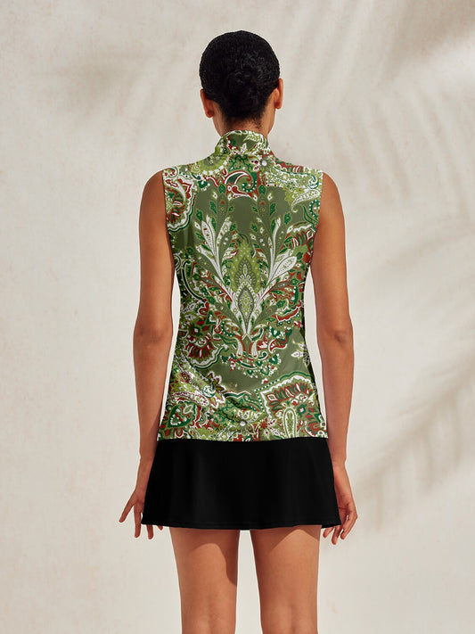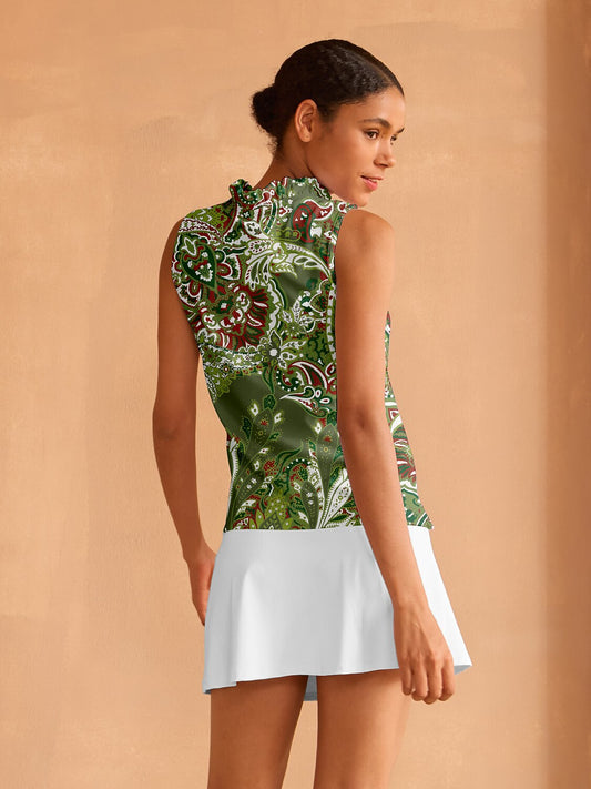 Botanical Energy Camiseta de golf con volantes sedosos y cremallera cuarto UPF50+