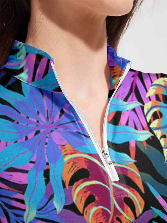 Hyped-up Tropical Golf Shirt Quarterzip UPF50+