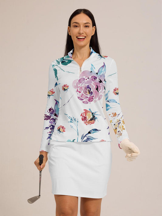 Paisley Polo Golf Zip Femme Manche Longue UPF50+