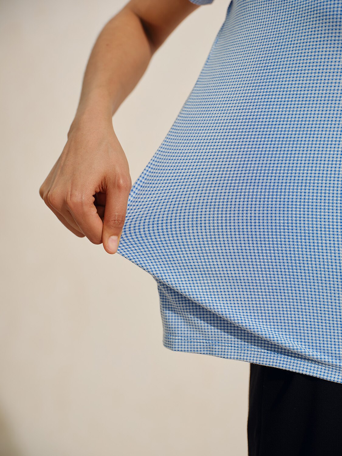 - Perfect Cut: Fit against body at chest and hip with more room at waist