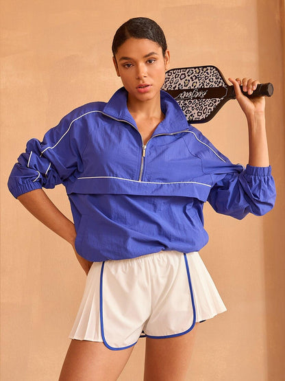 Faites des mouvements stylés dans le Vêtements Airful pour pickleball et tennis, fabriqué dans un tissu évacuant l'humidité, à séchage rapide et extensible dans les 4 sens, dans une couleur vibrante, qui sera sûrement un atout sur le court. Indispensable les jours de pluie, ce pullover fonctionnel présente un design compact et pliable ainsi qu'un tissu résistant au vent, avec un col zippé court.