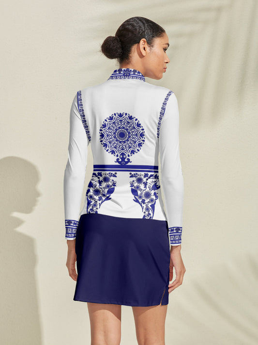Camicia da golf femminile elegante a maniche lunghe con protezione UPF50+