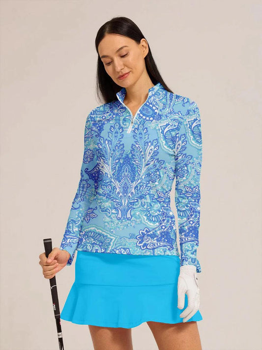 Elegante polo da golf femminile in seta con mezza zip e protezione UPF50+