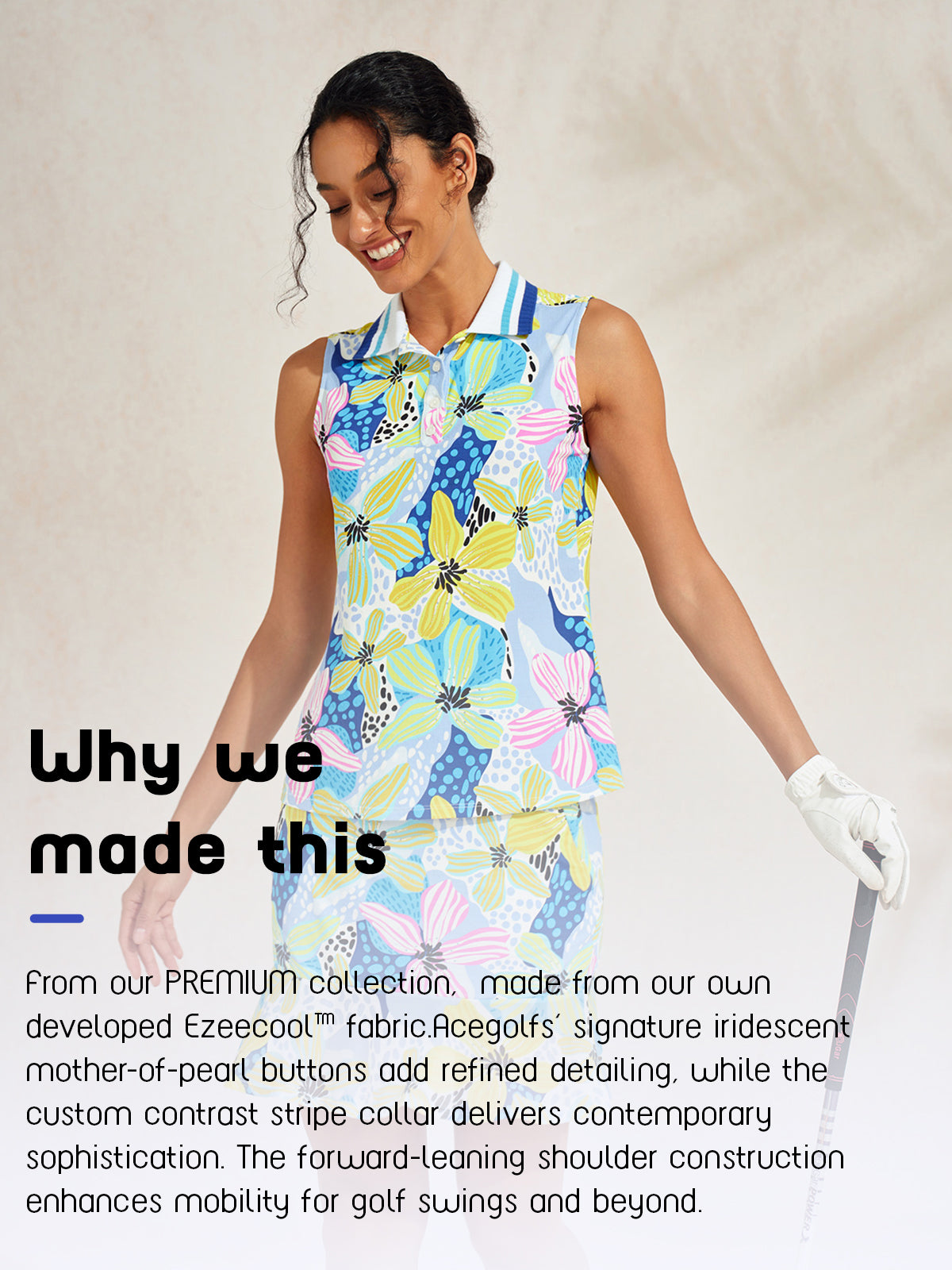 Dalla nostra collezione premium, realizzata con il nostro tessuto Ezeecool™ sviluppato internamente. Il design del motivo richiama ispirazione dalle paillettes, artisticamente disposti in intricati motivi floreali che fondono colori e trame, riflettendo la delicata bellezza dei fiori veri. Questa maglia presenta bottoni perlati, rifinitura con patta e pannelli laterali sagomati, spalle avanzate per una migliore mobilità durante il movimento, rete per ascelle design promozionale aggiuntivo comfort e traspirabilitàitaliano , che combina lusso e funzionalità ed è adatto a molte situazioni di vita dentro e fuori dal campo da golf.