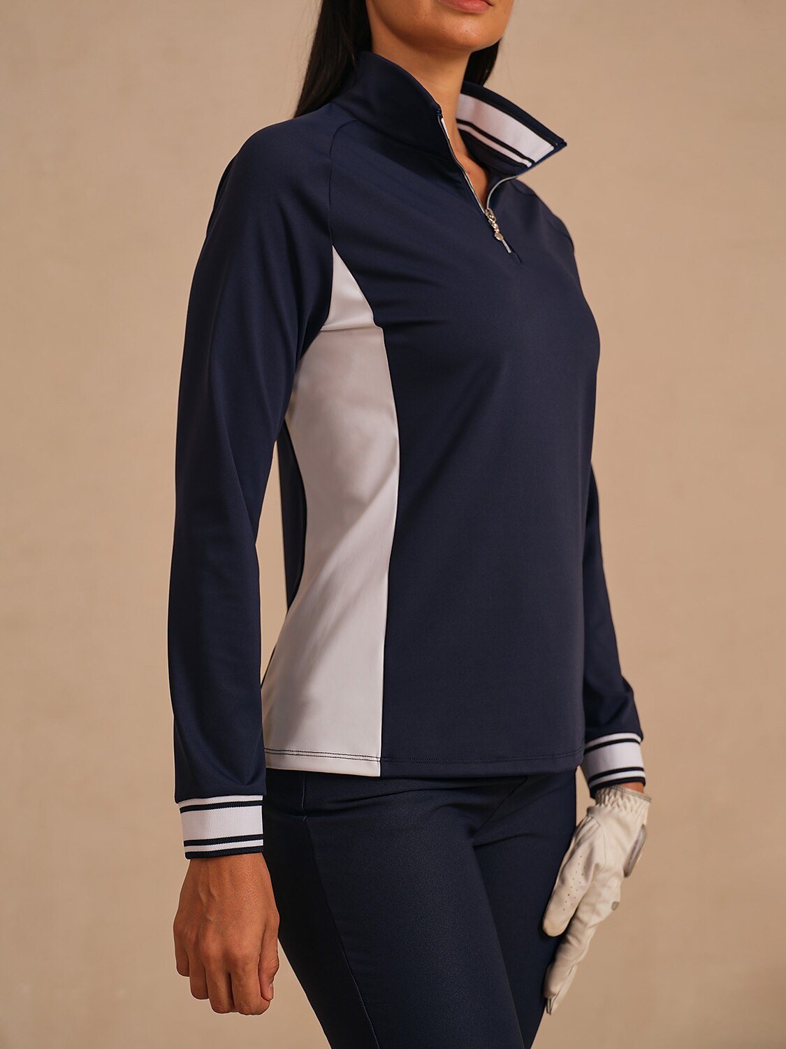 ネイビーコア 長袖ゴルフシャツ クォータージップ UPF50+