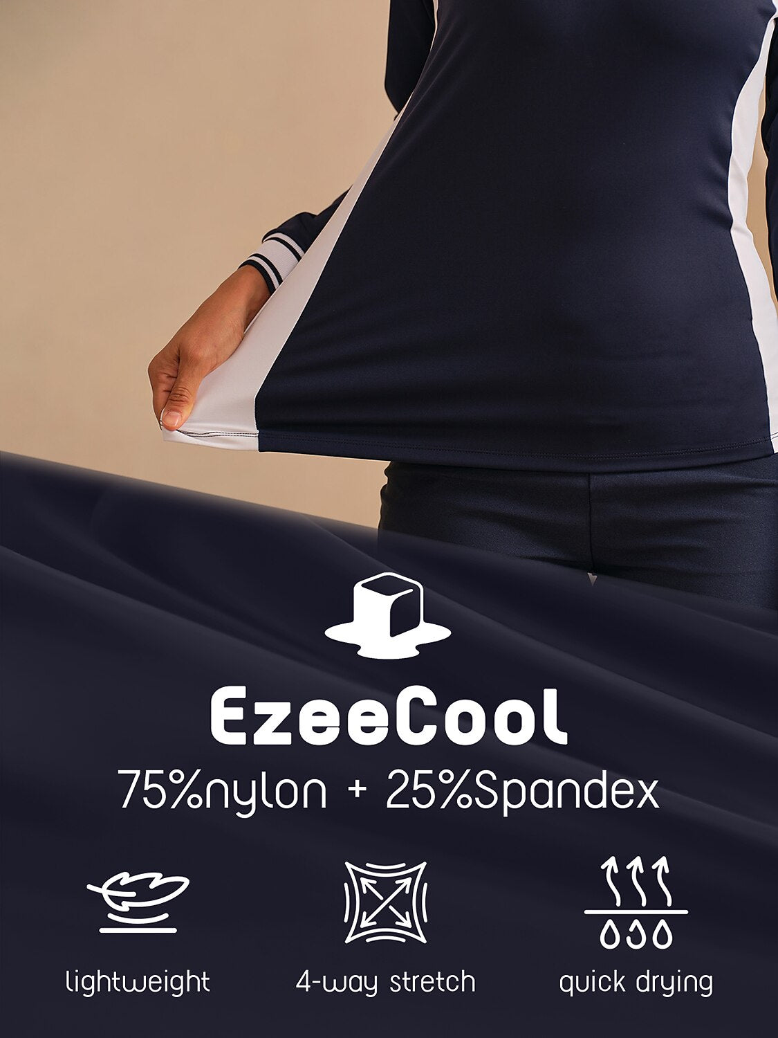 EzeeCool™ は、究極の快適さと動きやすさを実現するためにスパンデックスを強化した高性能ナイロン生地です。この 自己冷却 素材 しわに強い and is お手入れ簡単, 最小限の手間でシャープで整った見た目を実現します。涼しく絹のような感触で、夏に最適。湿気を吸収して乾燥と爽快感を保ち、あらゆる活動にぴったりです。