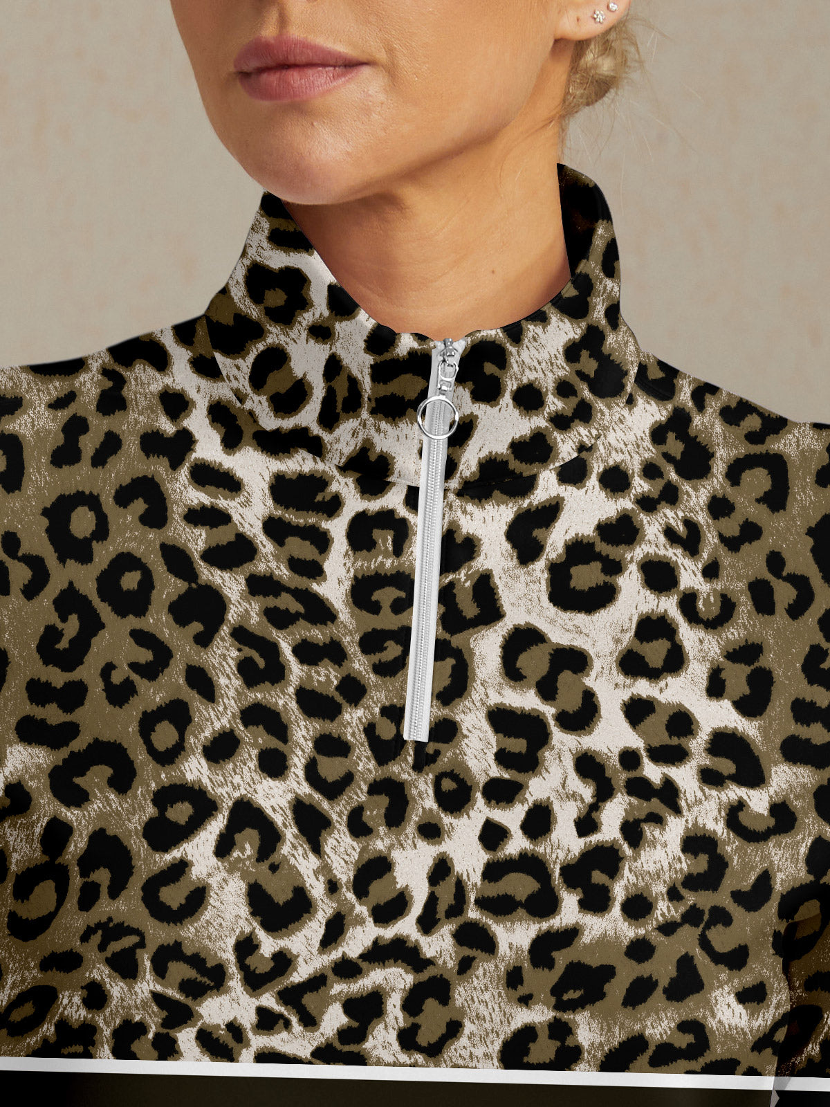 ベーシックを超えたレオパードメッシュゴルフシャツ クォータージップ