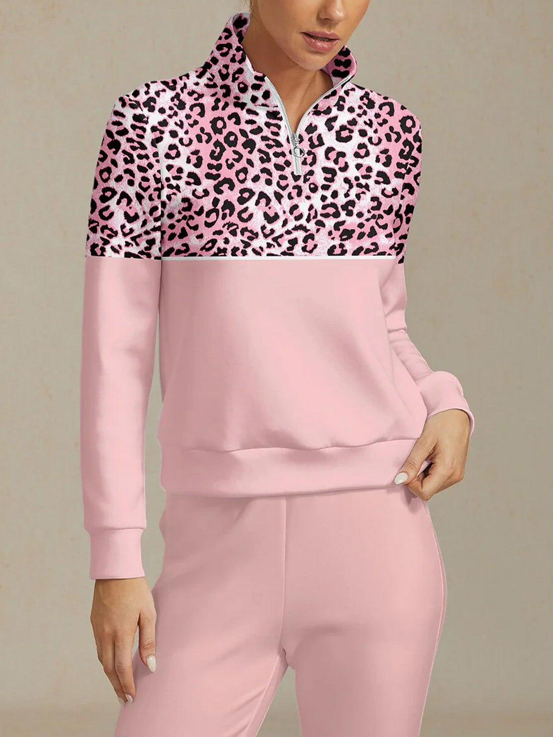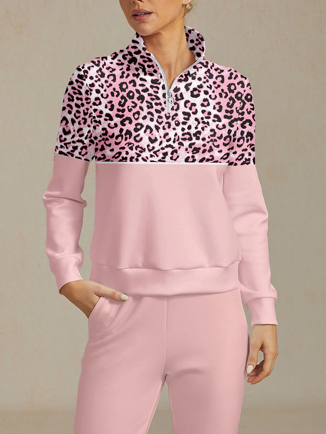 ベーシックを超えたレオパードメッシュゴルフシャツ クォータージップ