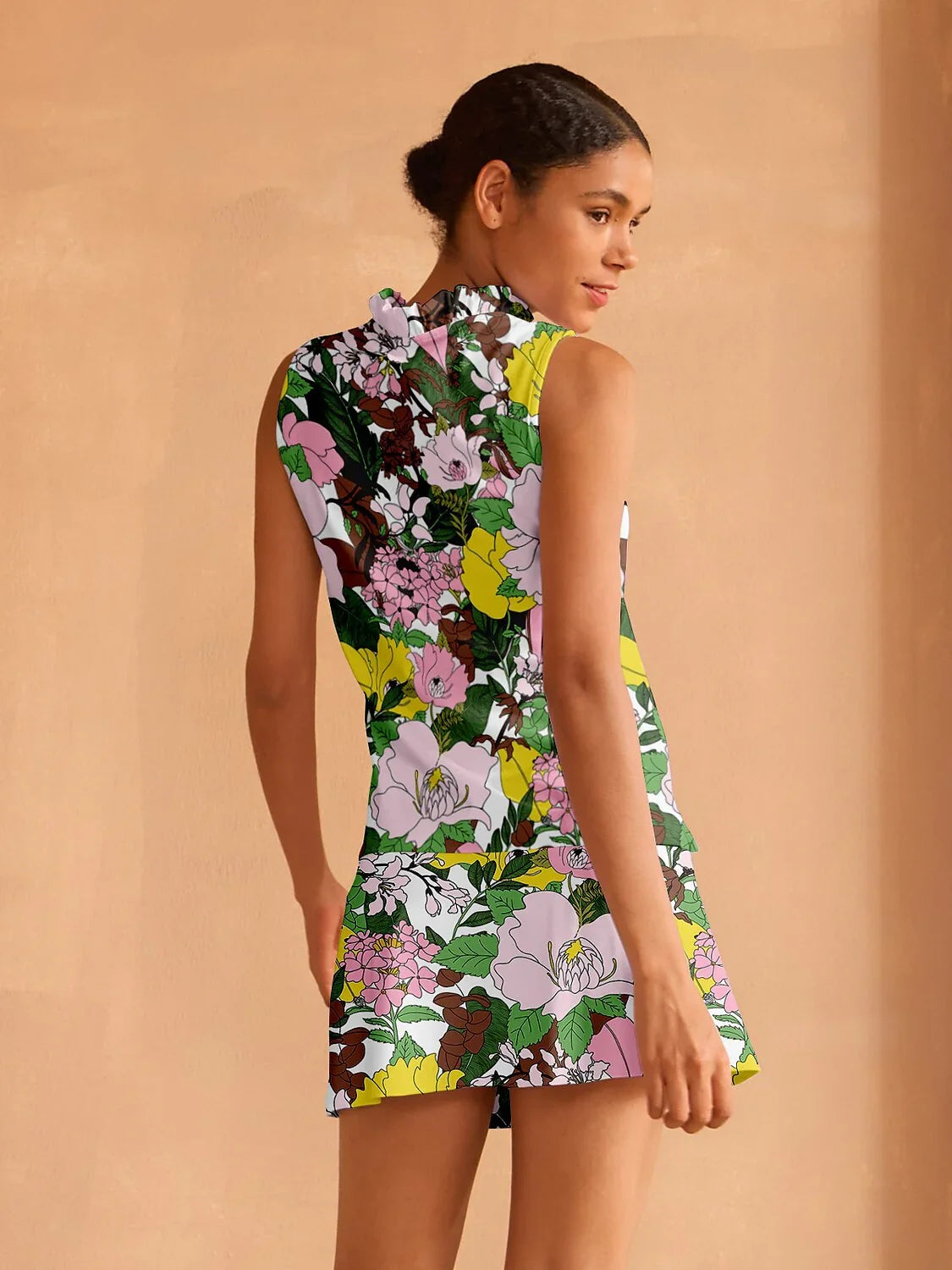 Botanical Energy ラッフルVネックタンクトップ UPF50+