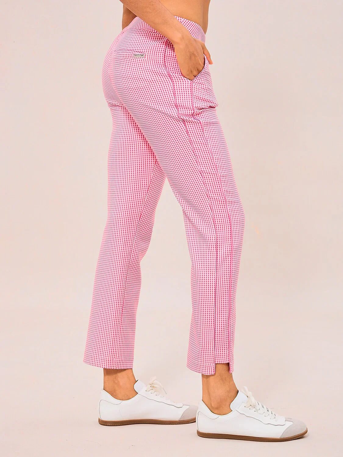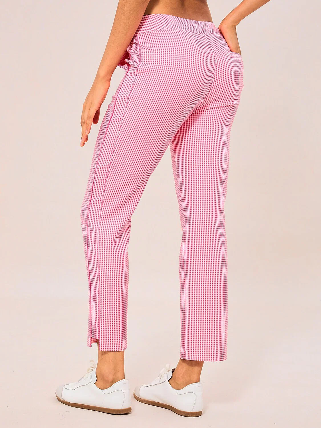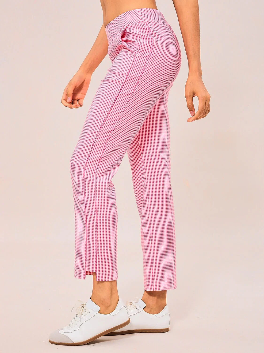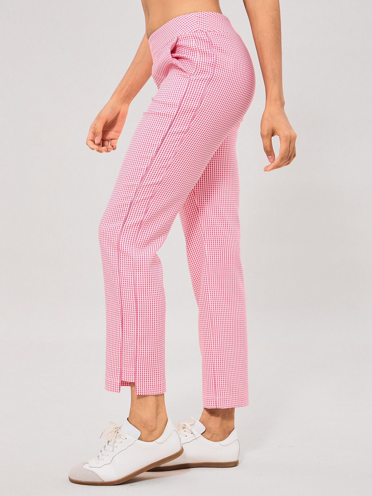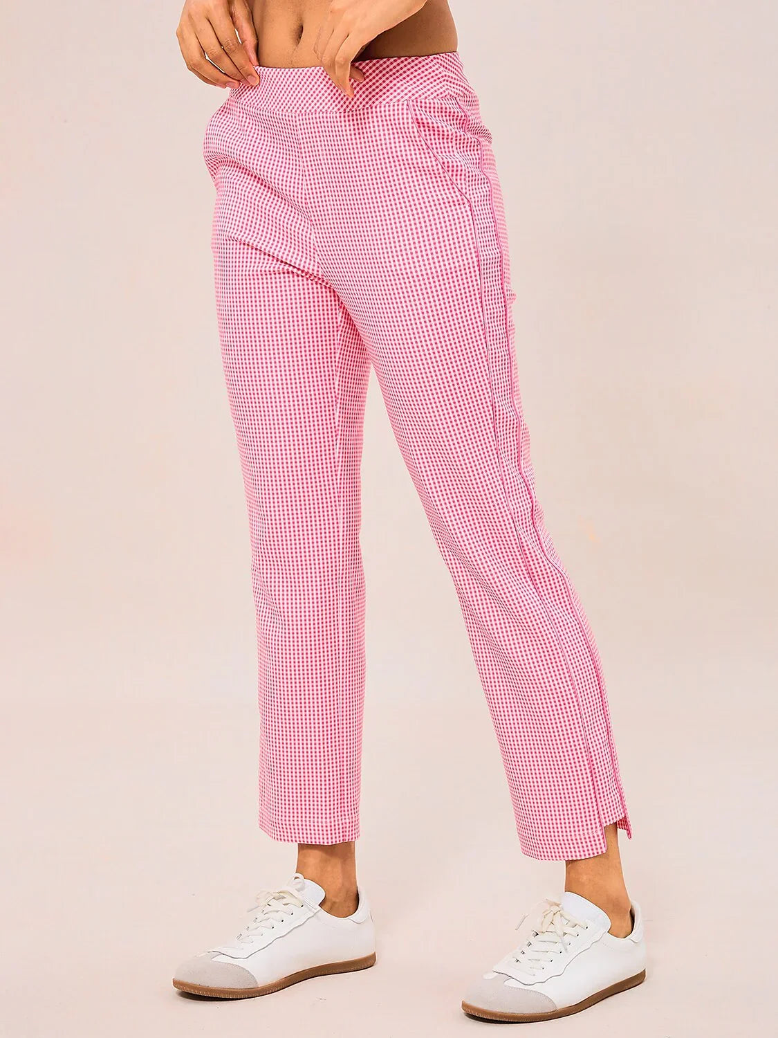 From our Essentials collection. The 28" pants have double-sided trim for a sleek, straight fit. Made from stretch fabric in a classic check. Pull-on design for flexibility. Perfect for any occasion.