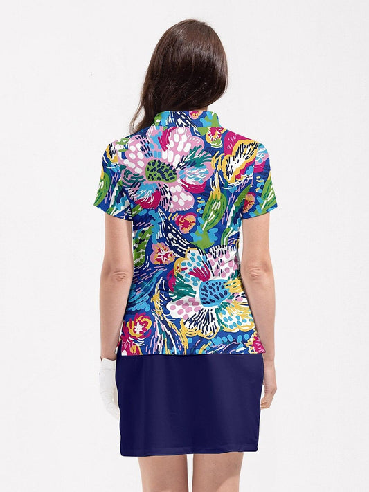 Opgepepte Tropische Golfshirt met Kwartrits UPF50+