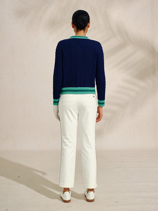 Navycore Colorblock Cable Knit Cardigan