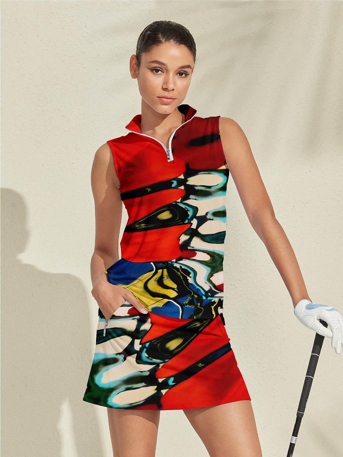 Pretty vrouwelijke golfshirt met kwartrits UPF50+