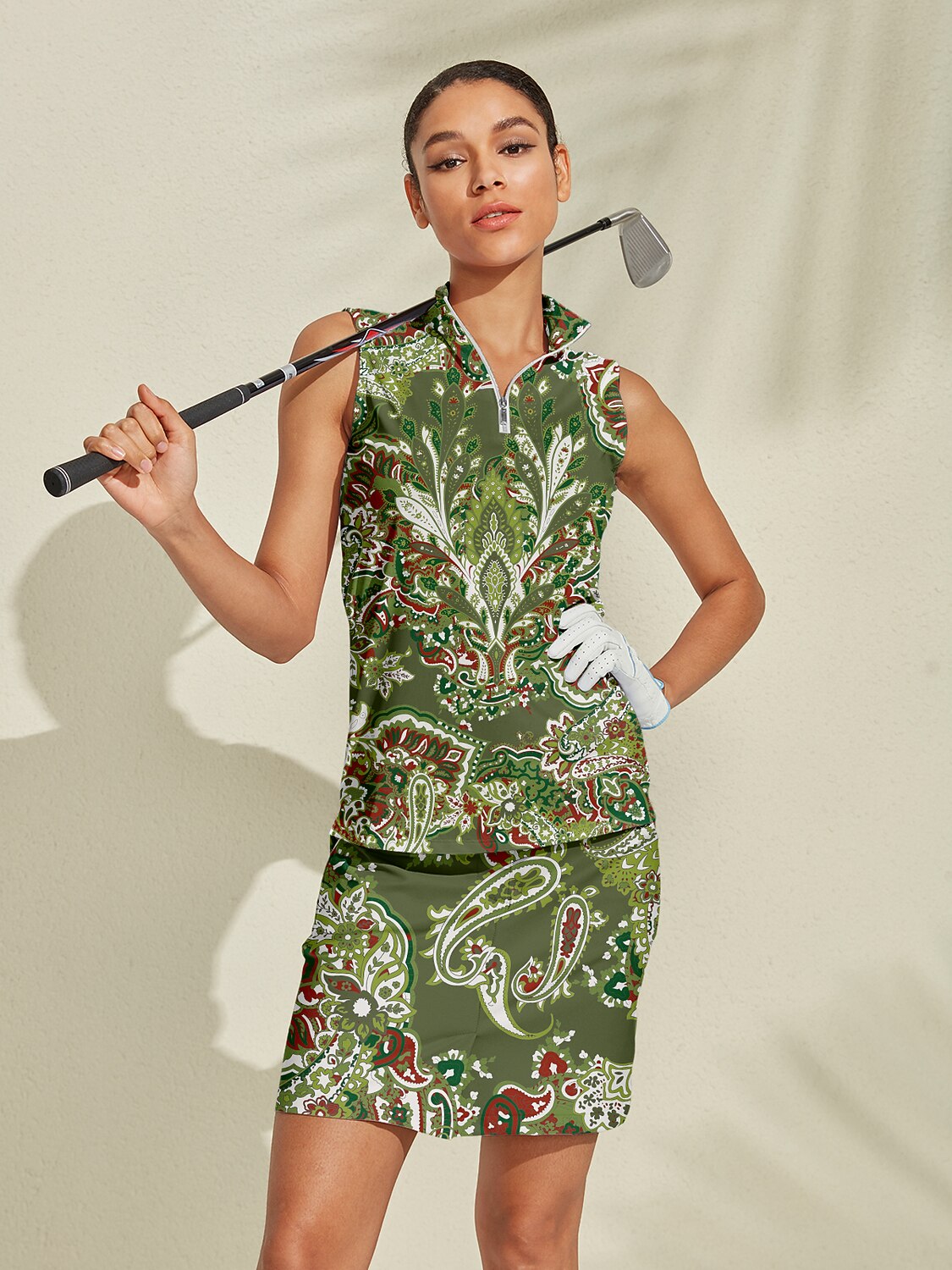 Pretty vrouwelijke golfshirt met kwartrits UPF50+