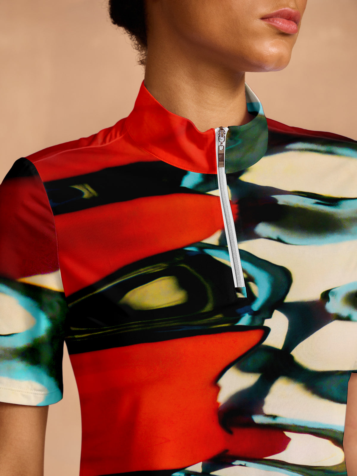 Botanical Energy Silky Ruffle Golf Shirt Quarterzip UPF50+