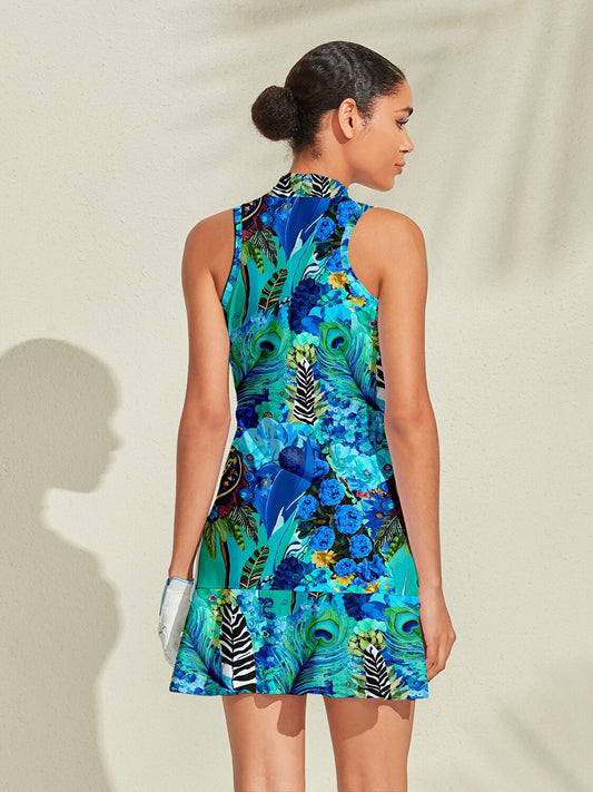 Hyped-up Tropical Ruffle 35.5 Inch Dress For Golf Pickleball & Tennis