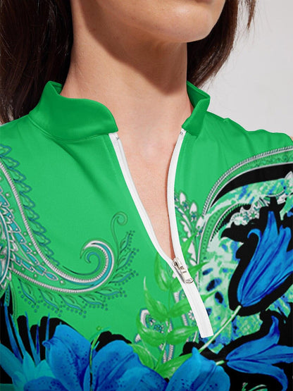 Botanical Energy Silky Ruffle Golf Shirt Quarterzip UPF50+