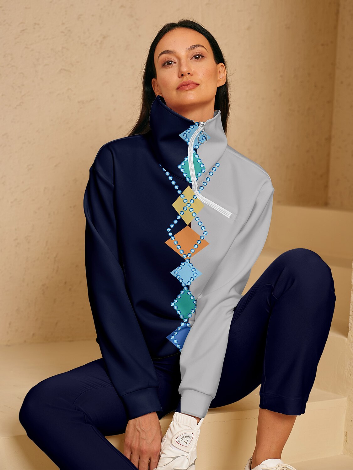 Made from moisture-wicking, and 4-way stretch fabric, these windproof beauties blend warmth with a soft, luxurious texture. The versatile zipper collar shapes your look to match any mood or occasion, while the sporty yet delicate prints ensure you stand out whether you're on or off the course. Perfect for adding a splash of style to any outfit, these sweatshirts are your go-to for effortless chic.