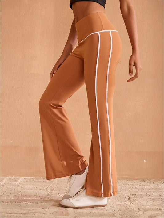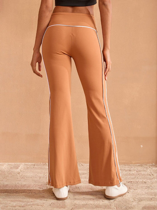 More Than Basic Crossover Waist 40 Inch Trimmed Flared Pants