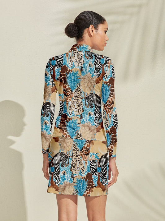 Wildlife Party Long Sleeve Ruffle 36.5 Inch Dress